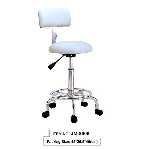 The stool seat which is wrapped in PVC artificial leather, that is strong enough to protect support. The gas lift is able to raise the height so you can adjust to facial bed or styling chairs you are working at. It keeps steady on a plastic star base with wheels