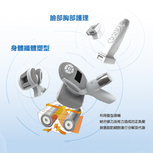 The Device employs four technologies including infrared, Bipolar RF, Vacuum, Massage mechanism.