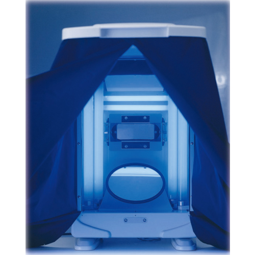 By optical ray to check the condition of the skin.